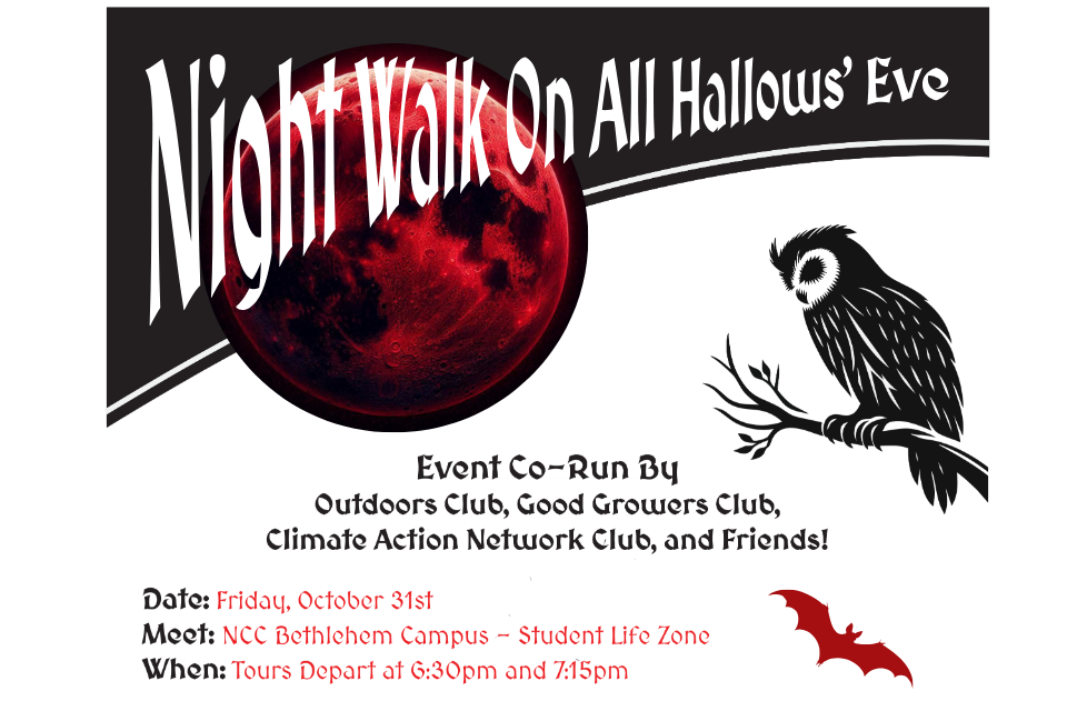 A fun student event: take a guided spooky walk through the woods of the East 40 with some laughs and scares! While you are there be sure to smash a pumpkin and grab some candy!Meet in the Student Life Zone on Friday, Oct. 31 - tours depart at 6:30 p.m. and 7:15 p.m. to walk to the East 40 for the event. Meet in Student Life Zone - walk to East 40