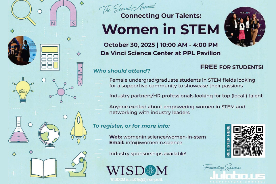 On behalf of the Women’s Club and Women’s Caucus, we are pleased to share an invitation to the Second Annual Connecting Our Talents: Women in STEM event, taking place October 30, 2025, from 10:00 AM – 4:00 PM at the Da Vinci Science Center at PPL Pavilion.This event is free for students and provides an inspiring day of networking, presentations, and connections between female STEM students, faculty, and industry professionals. Location: Da Vinci Science Center at PPL Pavilion.