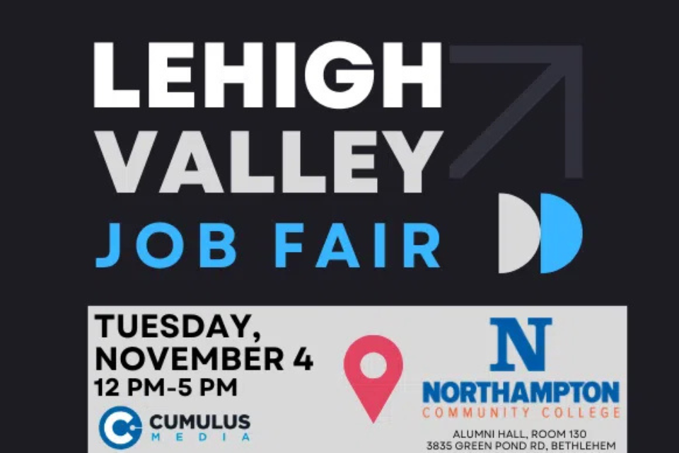 Join the Cumulus Media Allentown radio stations for the Lehigh Valley Job Fair on Tuesday, November 4th, from 12:00 PM to 5:00 PM at our new location — Northampton Community College, inside Alumni Hall, in Bethlehem.The Lehigh Valley’s top employers will be there and ready to hire. Dress to impress and bring your resumes.