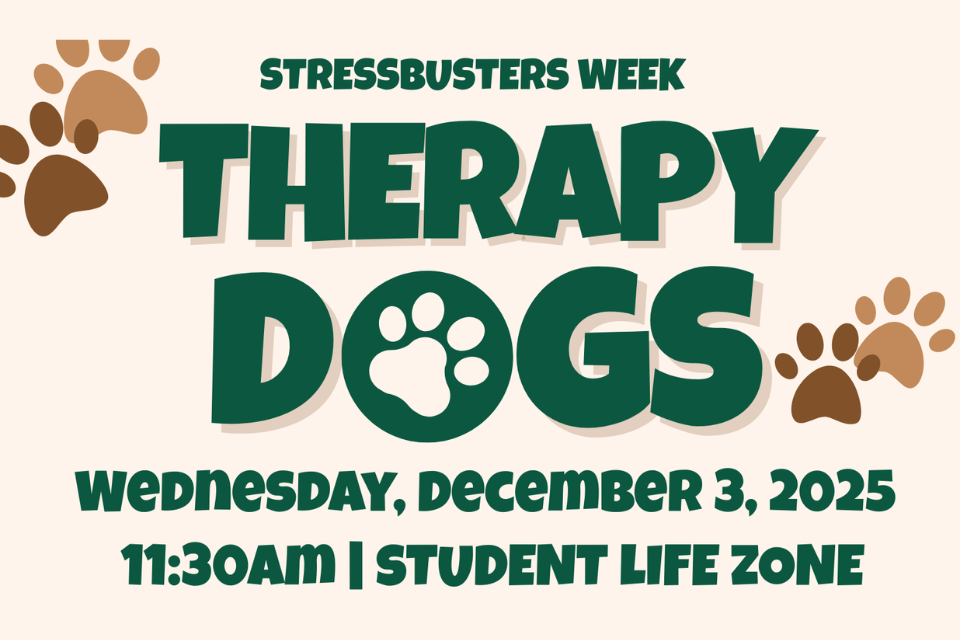 Stressed out? Need a break from studying? Come unwind with some furry friends from Lehigh Valley Therapy Dogs!Spending time with therapy dogs has been shown to reduce stress, boost your mood, and provide a calming break from a busy day. Stop by to pet, cuddle, and connect with these certified therapy dogs and their handlers.