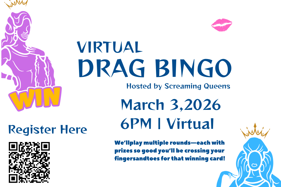 It's time for a study break that's high energy and high glamour! Join us for a fabulous night of virtual Drag Bingo! 3/3 at 6pm RSVP is required.
