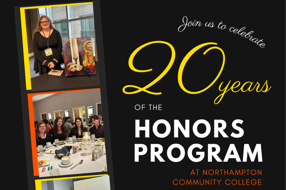 Come celebrate 20 years of the Honors Program at NCC with us on Thursday, April 16th from 3:30-5pm in CC220. Our celebration will include an alumni panel and refreshments will be served. All are welcome!Related Events