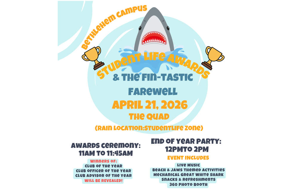Awards Ceremony: 11-11:45am; End of Year Party 12-2pmWinners of Club of the Year, Club Officer of the Year, and Club Advisor of the Year will be revealed! Event includes music, activities, mechanical great white shark, 360 photo booth, food, and refreshments.