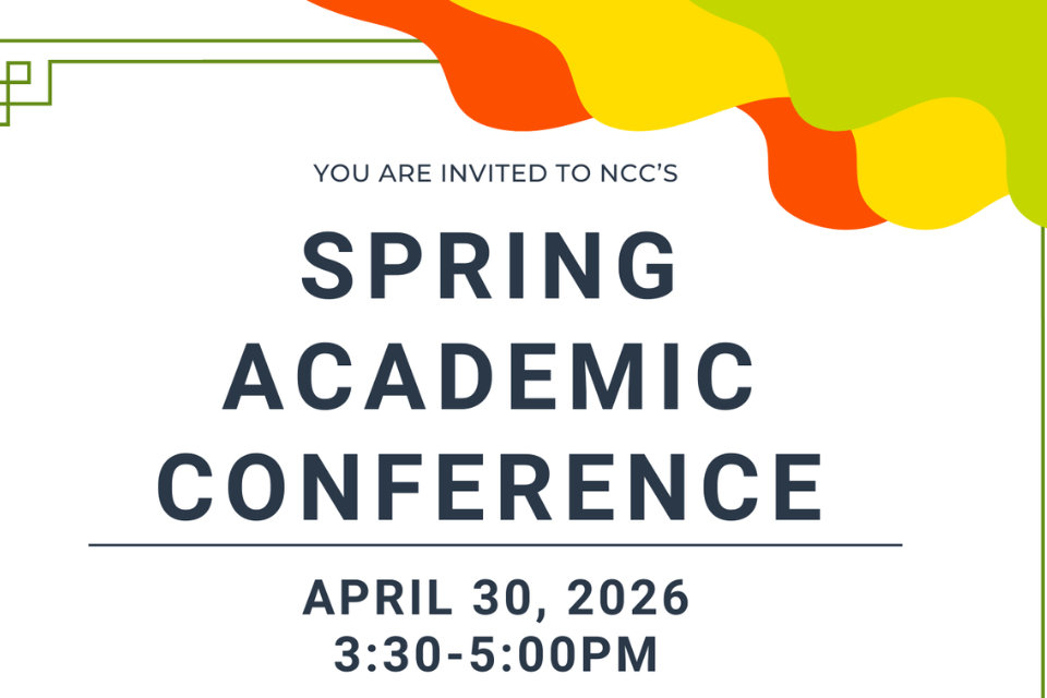You're invited to the Spring Academic Conference at NCC! The Spring Academic Conference celebrates excellent student work across all disciplines and types of projects. Student presentations of work will be followed by an awards ceremony. Refreshments will be served.