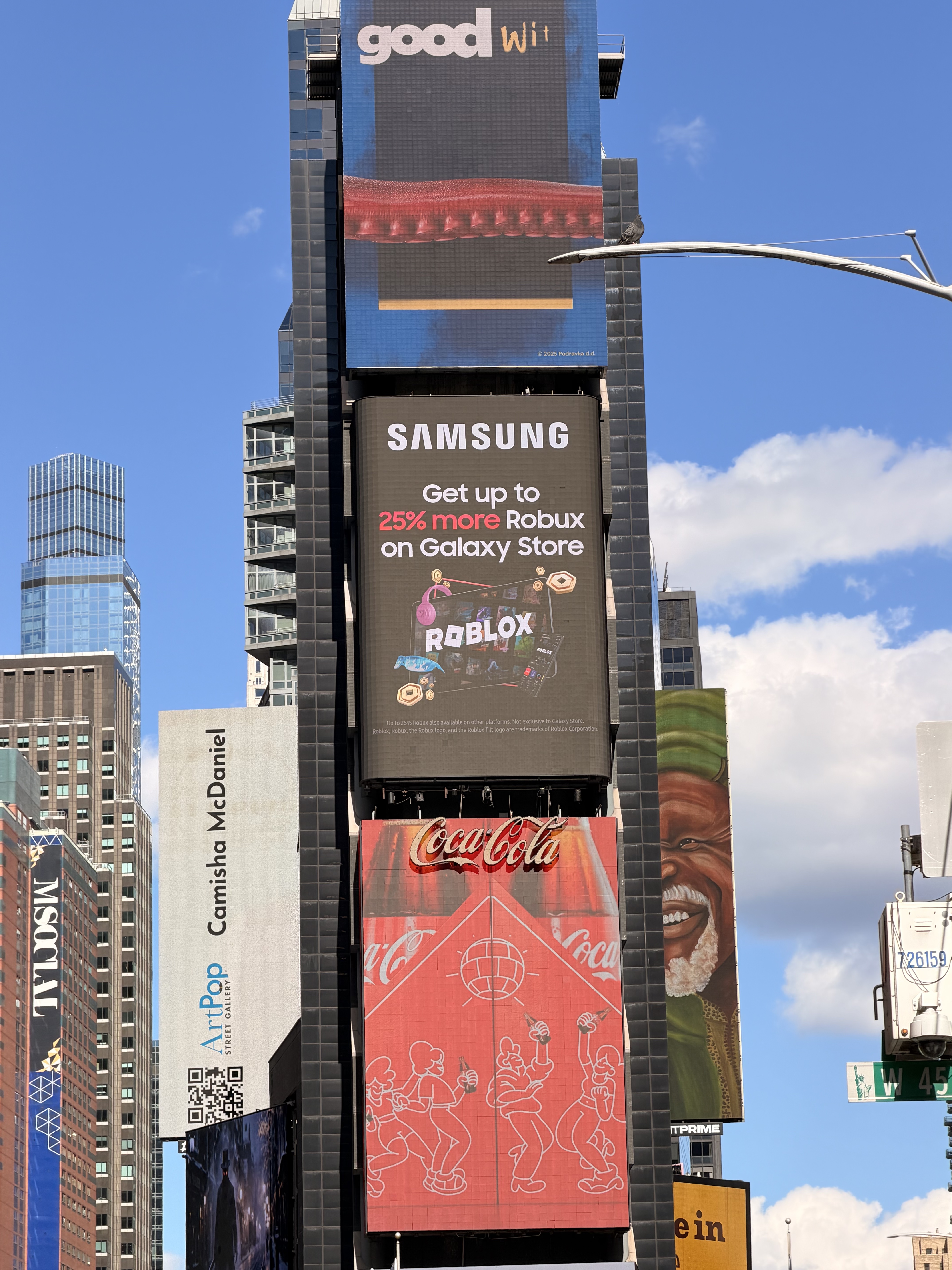 In his Samsung role, Kossup designs and produces branding, campaigns, and presentations. He directs agencies on major campaigns for Samsung and designs the key visuals for these campaigns. He ensures brand consistency across all digital and print touchpoints. An example of his work, art direction for a global partnership with the game Roblox, is currently running in Times Square.