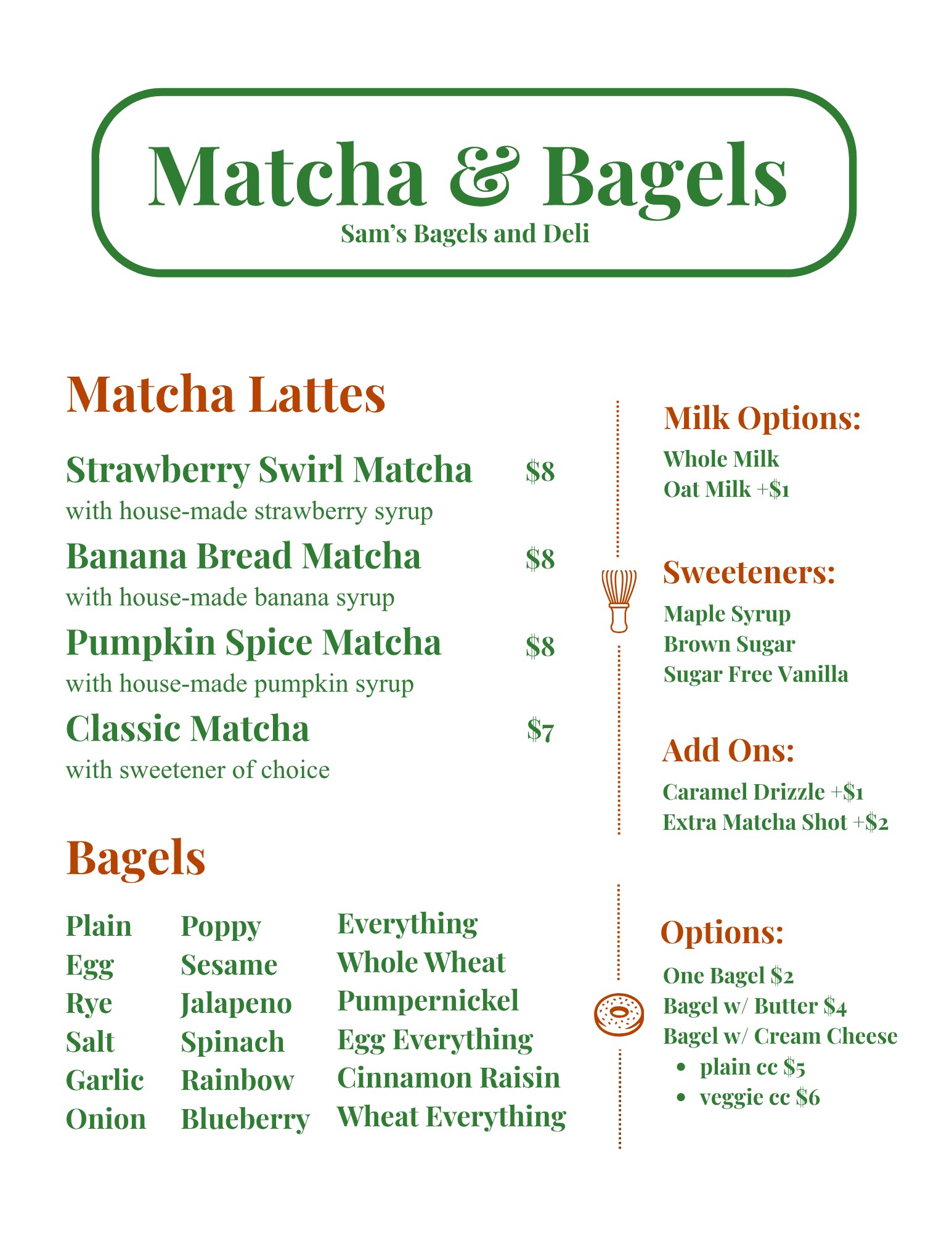 Join us in Alumni Hall in front of the Hampton Winds restaurant to continue enjoying Sweets, treats, meals and more from the Culinary Students as well as Delicious Matcha Drinks and fresh Bagels With Aya and Sam's Bagels.